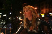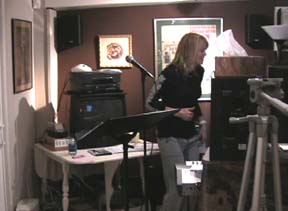 Lucy's been talking about the new outfit Alek Adorian made for her for the Canal concert and here it is! You should have seen the faces of the people walking by. It was great fun! More pics on the Official Lucy Lawless Fan Club page. Lucy's still in her Tina mode thinking "What's Love Got To Do With It?" Check out the Official Lucy Lawless Fan Club page for"Shakey Ground." It's off to NYC we go tomorrow. The band will be meeting for the first time. I'm heading for the Canal Room to check out where all the parts go. We're doing another 3-camera shoot for the dvd of the concert. Can't wait to get back to my old stomping grounds. ![]() (wmv version) I think Lucy's got a thing for TinaTurner. Michael began playing "River Deep, Mountain High"and Lucy started to fly! If this song doesn't make the Canal show, it's got to be in the next one. Checkout the Official Lucy Lawless Fan Club page for "To Sir With Love." ![]() (wmv version) Lucy and Michael Orland have been hard at work finding new songs for the Canal Room concert. They even turned to the computer looking for artists they like and lists of their hits. Cyndi Lauper's "True Colors" seemed fitting as it speaks to those who don't seem to quite fit in. Have you tried to explain to your family why you're flying across the ocean to hear Lucy sing? <G> (click image for QT version) Check out the Official Lucy Lawless Fan Club page for more clips and more songs. ![]() (wmv version) There's going to be a TV ad for Lucy's NY Canal Room concert and the NYconvention with Lucy and Renee running on Xena on the Oxygen channel May 23 and May 24, 7-8 AM ET/PT time. Here's the commercial (click image for QT). Now I want to see everyone get up early and watch it run on the show! And if you're wandering around the city, you may see this black and white poster hanging hither and yon. ![]() (wmv version)