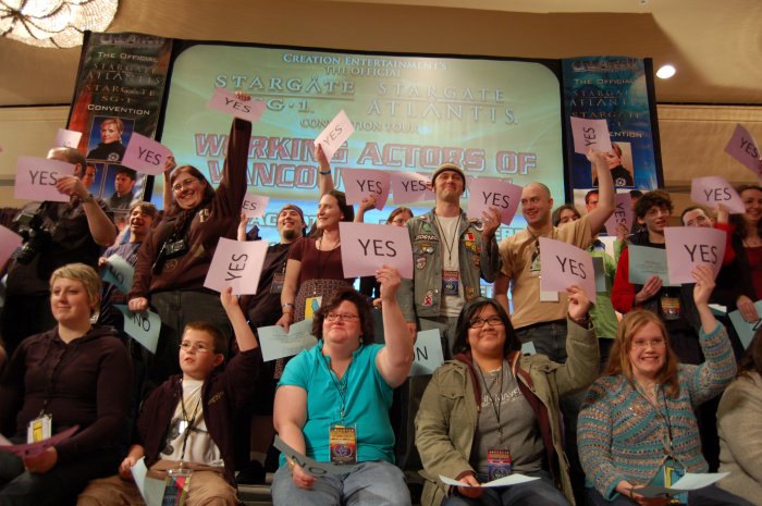 The 2009 Official STARGATE SG-1/UNIVERSE Convention was a smashing sold-out success thanks to the amazing support of our fellow Stargate fans from around the world, the line-up of amazing celebrities, and of course the incredible production team. The Vancouver convention is meant to be an intimate show for a bit over 500 fans and all the attendees were on hand for the full four days allowing for a cool friendly and party atmosphere that stretched from arrival to departure and featured set visits, parties, on-stage events, contests, videos, music, hanging with the guests, autographs, photo ops, and casual get togethers.