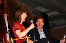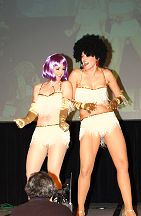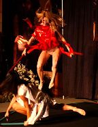 While perfection is a goal that is stated as unattainable, for us the perfect convention weekend was the 2005 Annual Official Xena Convention. Truly one for the ages! A glorious time was had by all and love was surely in the air as fans from the far corners of the world came together to celebrate the 10th Anniversary of the series that changed the face of television forever. To state the obvious, Xena fans are blessed with two superstars that are simply the most outrageously talented ladies around! Just check out these photos: have any series stars ever "brought their game" to a convention like Lucy and Renee? From Lucy suggesting a 10th Anniversary cake entrance (ever try to find a giant prop cake in less than a day?) to Renee notching up photo ops to a whole new level by posing with everyone in her costume wedding gown.. to that hot disco song that Lucy sang on entering... and Renee's dancing: well, we're still recovering from that number. No wonder the fire alarm went off! And while L&R certainly took the cake (no pun intended) there was so much more to cherish and remember. Every guest was sensational, but we must give some special shout-outs: - Rob Tapert and Chris Manheim for an absolutely way too short presentation that gave us all a rare look inside the production of the series and the camaraderie that existed in the writing room - To "the man" Steve Sears for writing the incredible XENA PUPPET SHOW: what a performance the puppeteers gave and an immediate huge standing ovation was their reward! It was perfect and quite a surprise! - To Alexis Arquette for the winning turn during the cabaret and to Alison Wall for a beautiful performance piece! We love raising the bar for convention entertainment and you guys really flew! - To Hudson Leick: for never letting her audience down and bringing her singular personality to our stages yet again! - To fantastic writer and inspiration Katherine Fugate for updating us on the feature film we are hoping for! - To Ted Raimi for bringing the convention to a close with a rousing comedic presentation "Ted" style! - And to everyone else for your contributions in making this the best one yet: Meghan, Sheeri, Tsianina, Missy, Jennifer, Gillian, David, Bruce, Danielle, Paris & Gary Jones! Creation's special thanks to our own Sharon Delaney for the spectacular MC job: the perfect mix of good questions and audience interaction with our guests Well over $30,000 was raised for charity during the convention, continuing in the unprecedented dedication to "the greater good" that has made Xena fandom the most generous of all! Visit our e-mail section for fan reviews of the event by linking HERE! |